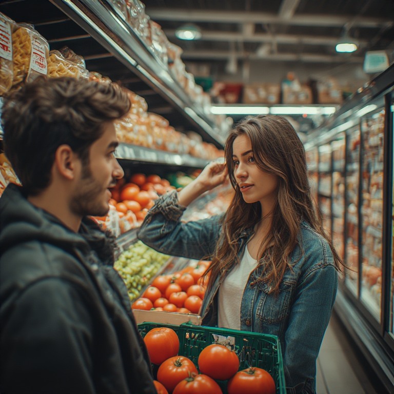 Zwischen Regalen voller Pasta, Obstkisten und dem Summen der Kühltheken steht ein attraktives Mädchen mit offen getragenen, glänzenden Haaren. Sie ist gerade dabei, Tomaten auszuwählen, als sie plötzlich ein leichtes Ziehen im Nacken spürt. Ein kurzer Ruck an ihrer Haarsträhne – völlig unerwartet.